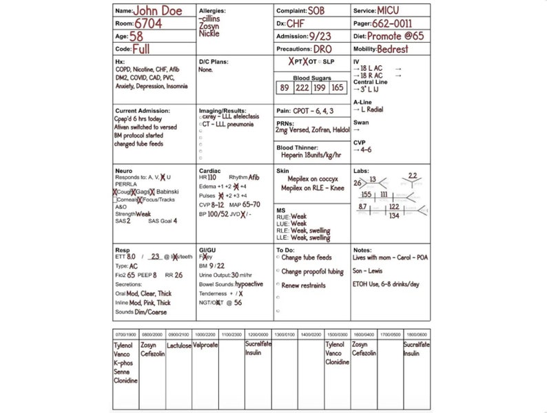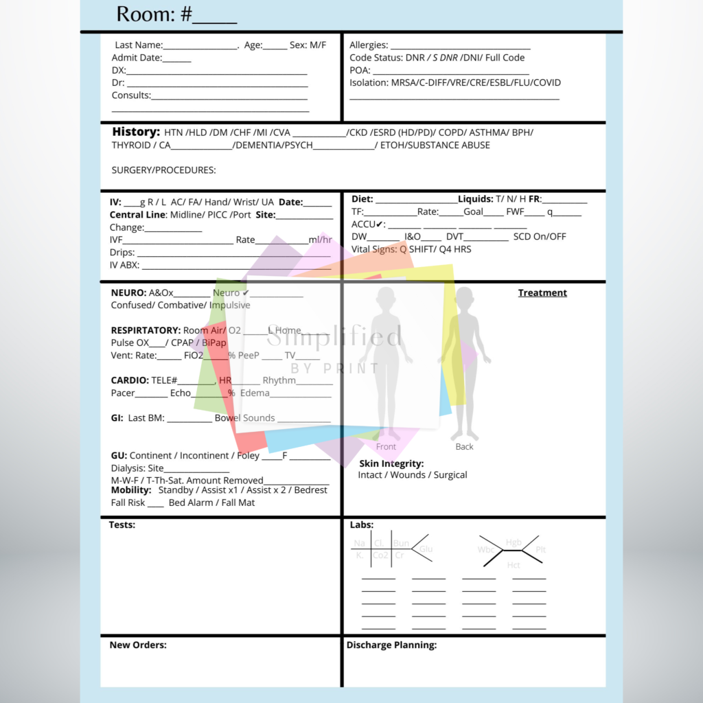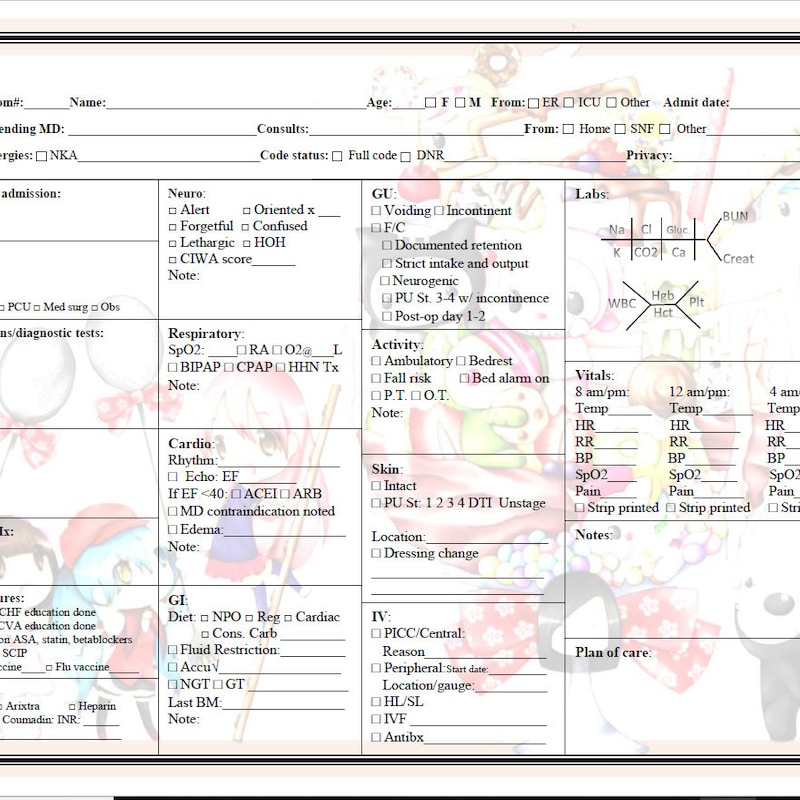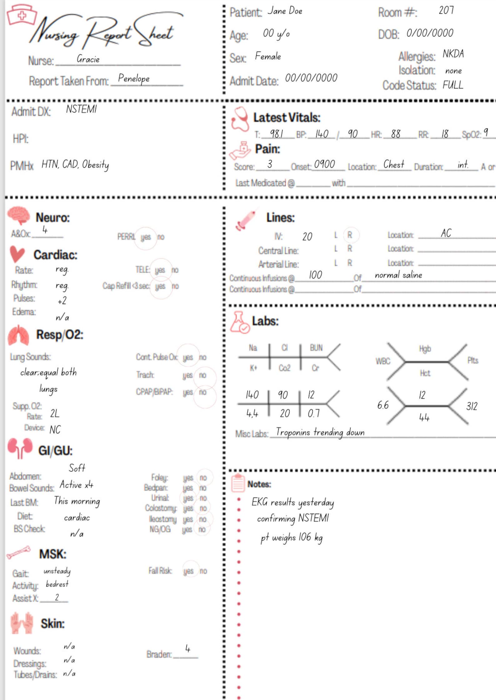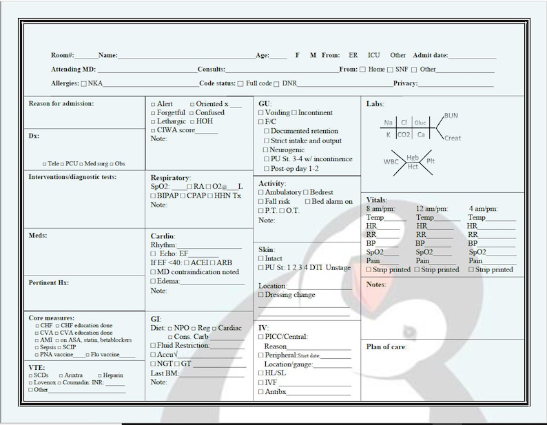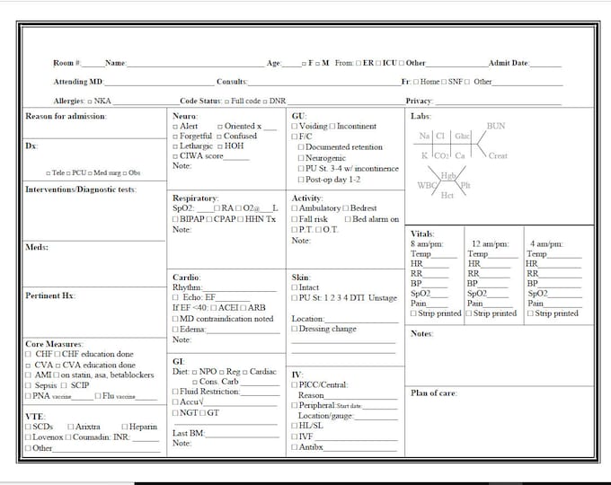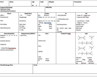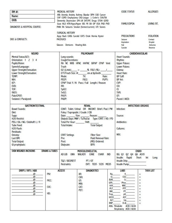 Nursing Report Sheet for Med Surg and Cardiac Telemetry Nurses Etsy