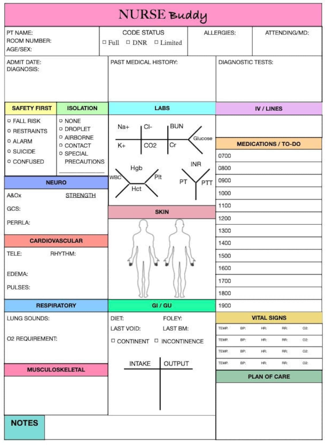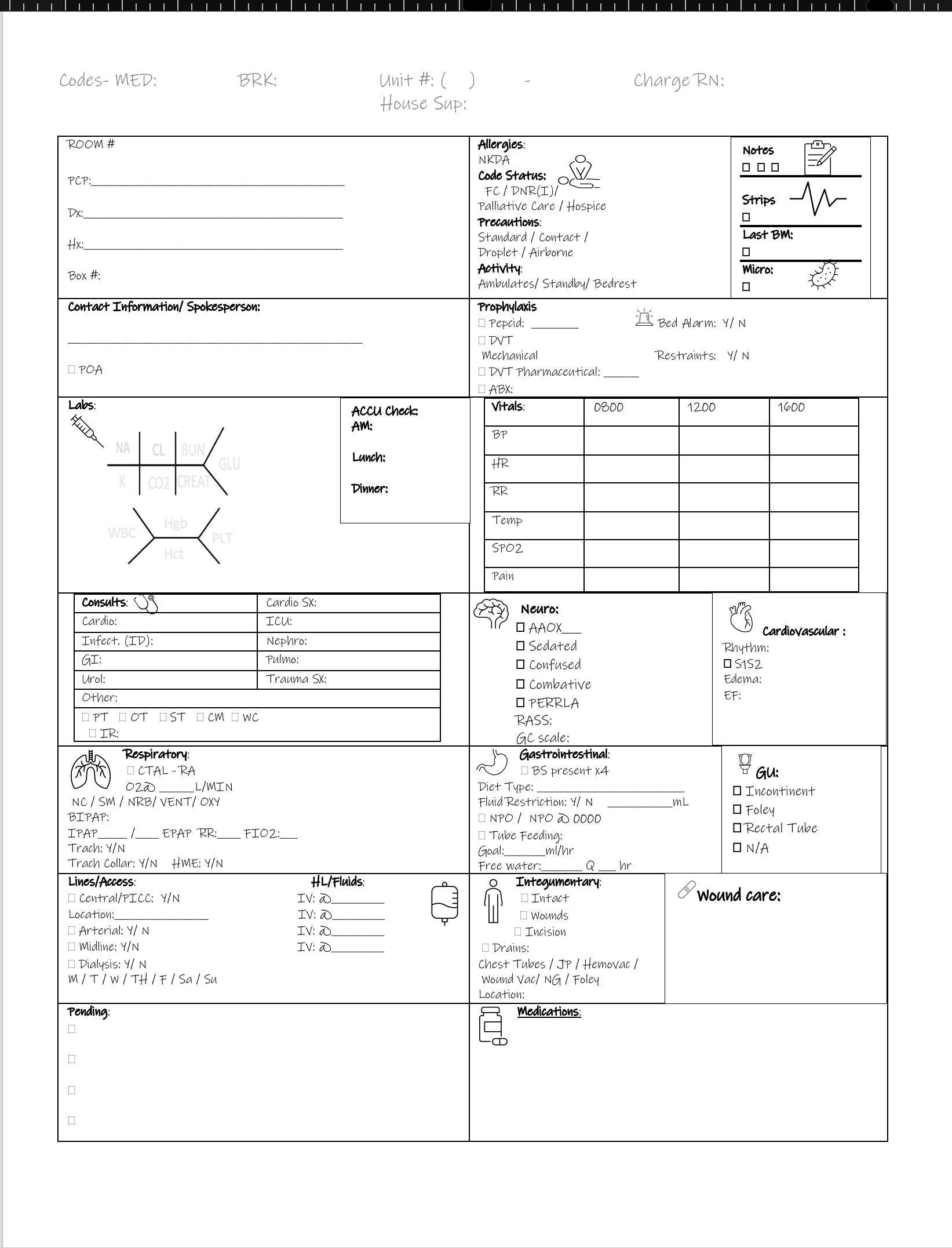 Nurse Report Sheet Nursing Report Sheet RN Repot Sheet Nurse Brain