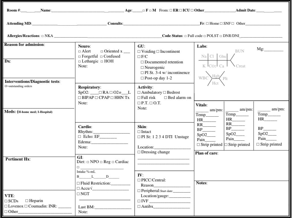 Charge Nurse Report Sheet Template Business fromgrandma best