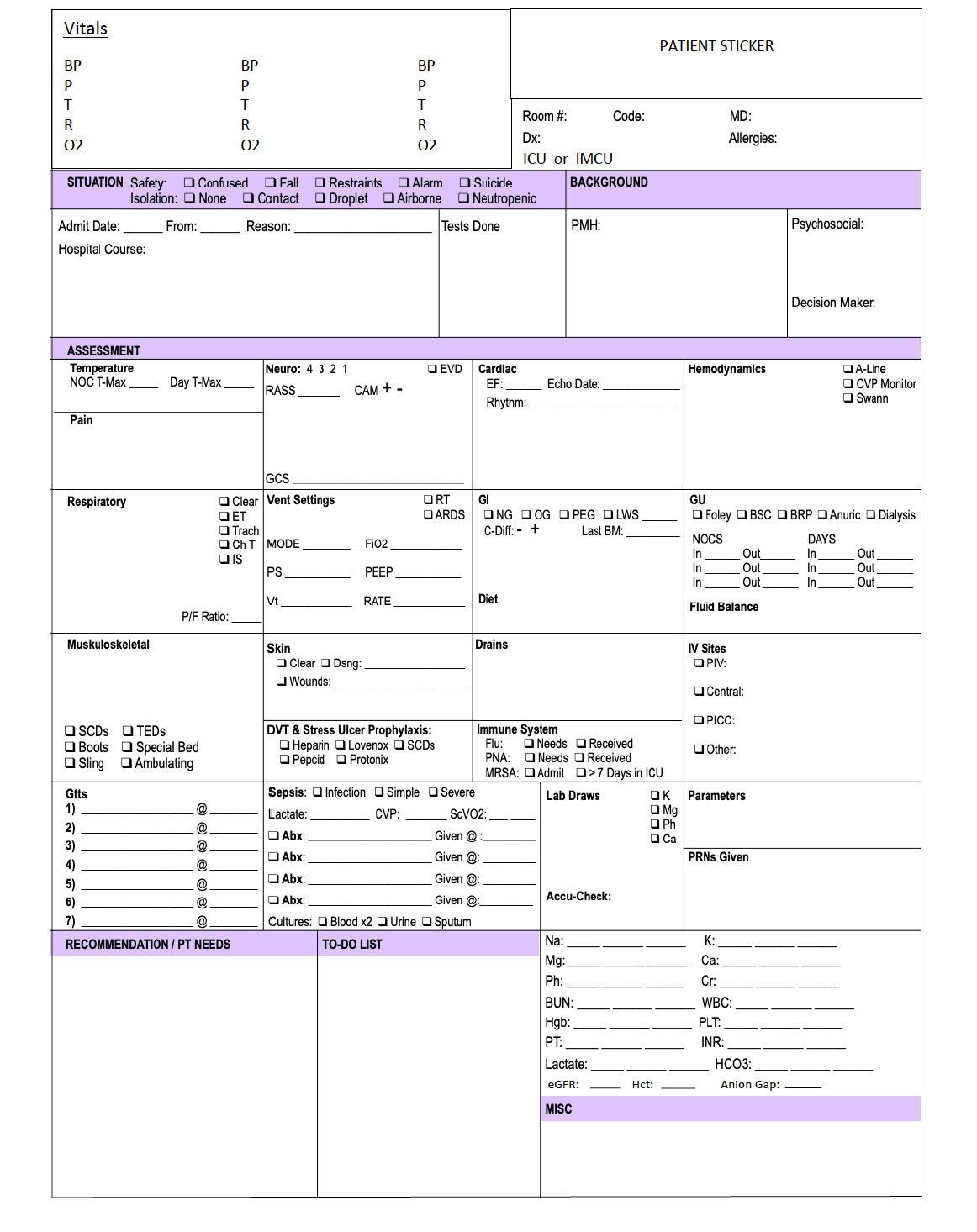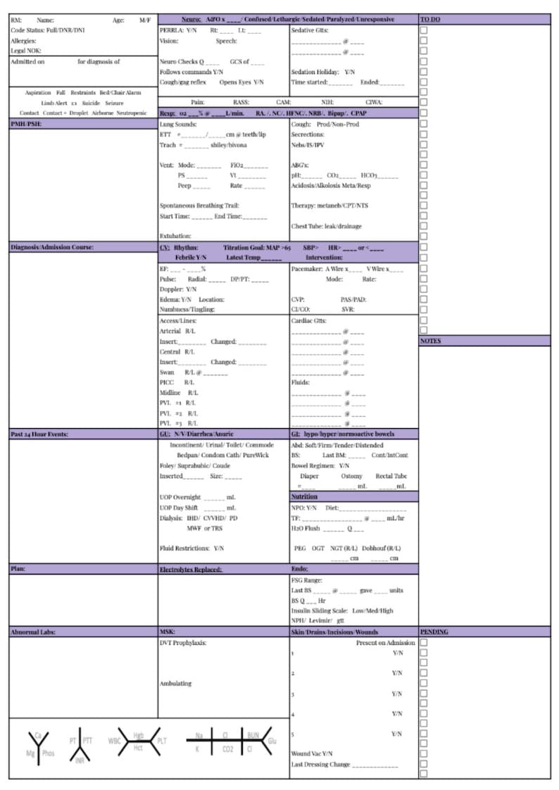 ICU Nursing Report Sheet Medsurg Nursing Report Sheet Telemetry
