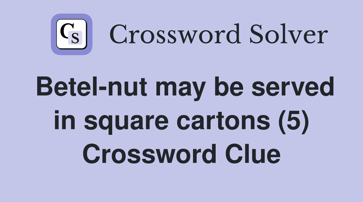 Betel nut may be served in square cartons (5) Crossword Clue Answers