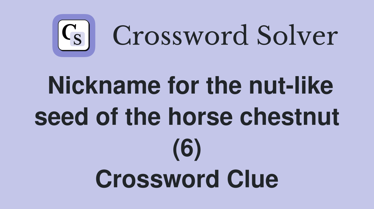 Nickname for the nut like seed of the horse chestnut (6) Crossword