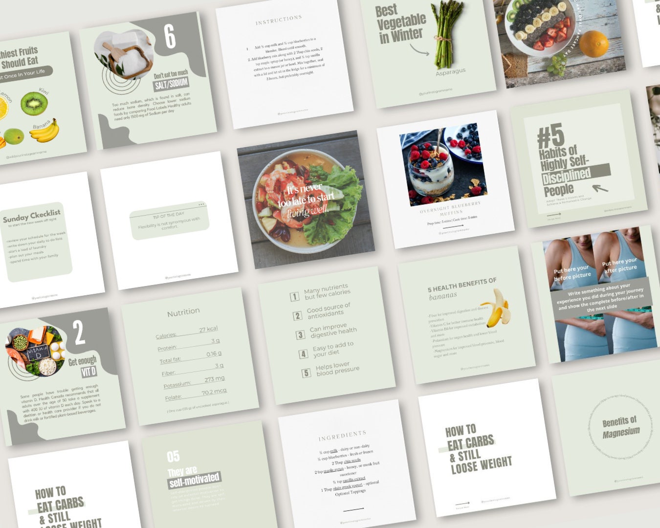 Nutrition Coach Instagram Templates Canva Health Posts (digital