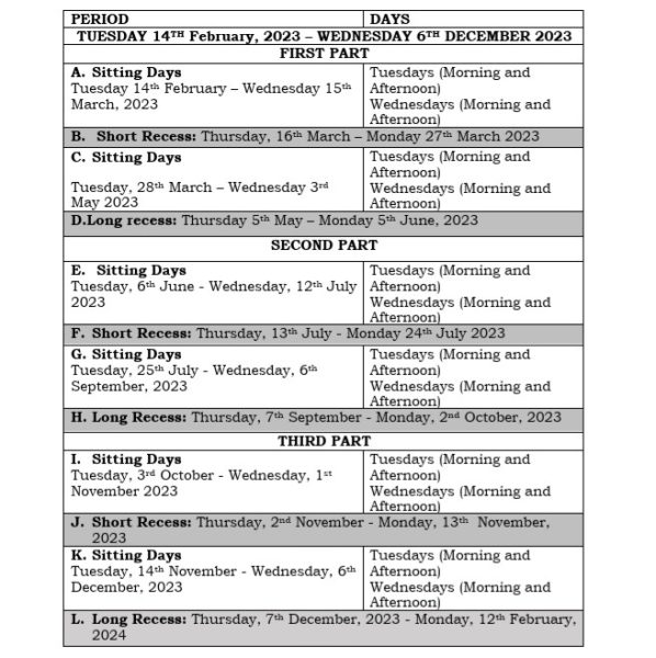 HOUSE APPROVES THE ASSEMBLY CALENDAR Nyeri County Assembly