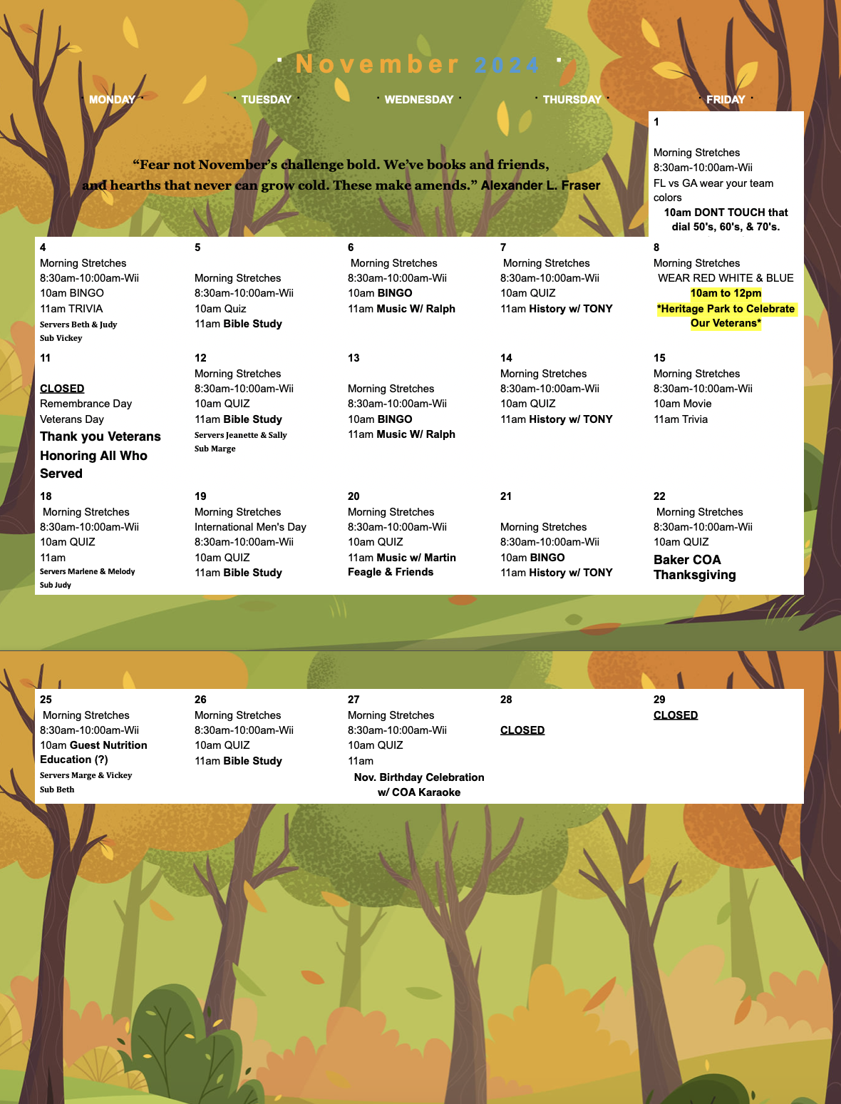 Baker County Council on Aging Activites Calendar