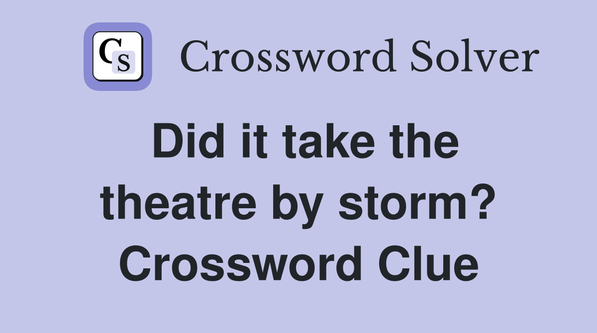 Did it take the theatre by storm? Crossword Clue Answers Crossword