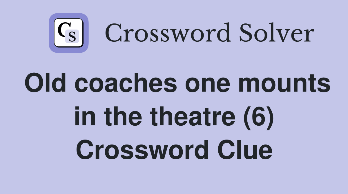 Old coaches one mounts in the theatre (6) Crossword Clue Answers