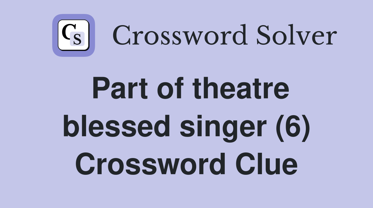 Part of theatre blessed singer (6) Crossword Clue Answers Crossword