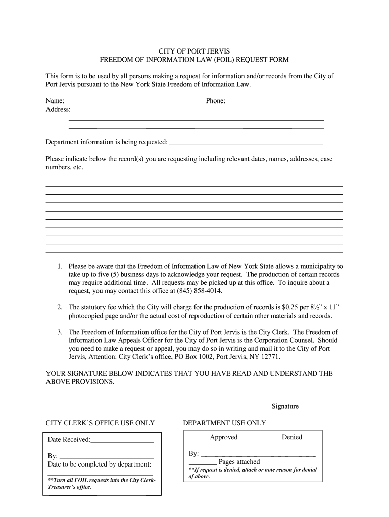 Fillable Online FOIL REQUEST FORM Fax Email Print pdfFiller