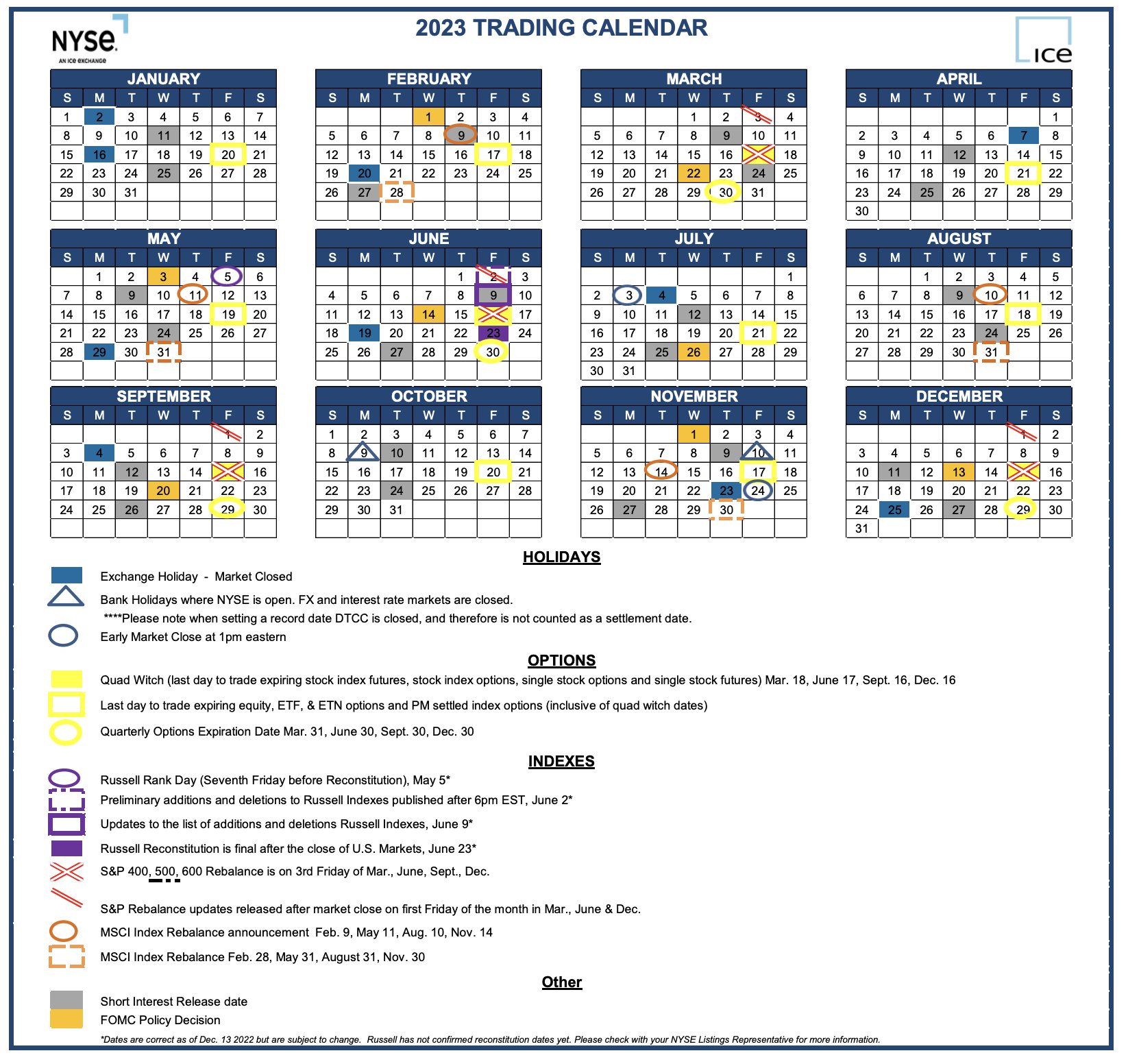 ICE NYSE 2023 Yearly Trading Calendar PDF