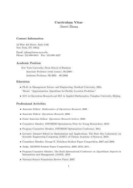 Curriculum Vitae Jiawei Zhang NYU Stern School of Business