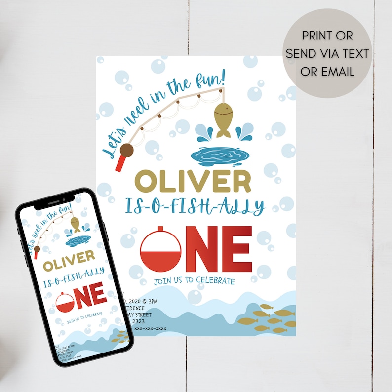Editable O fish ally One Birthday Invitation Digital Invite Fishing