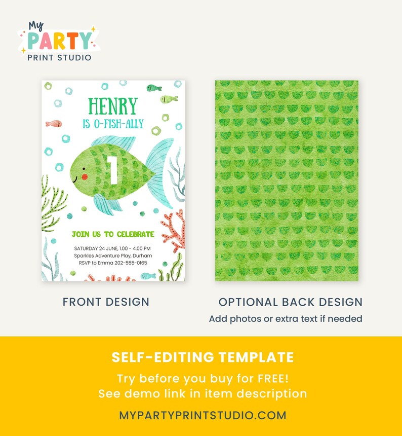 O fish ally One Birthday Party Printable Editable Template Etsy