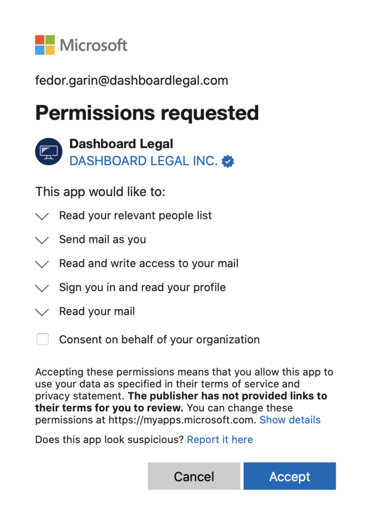Configuring o365 Email/Calendar Integration Dashboard Legal Help