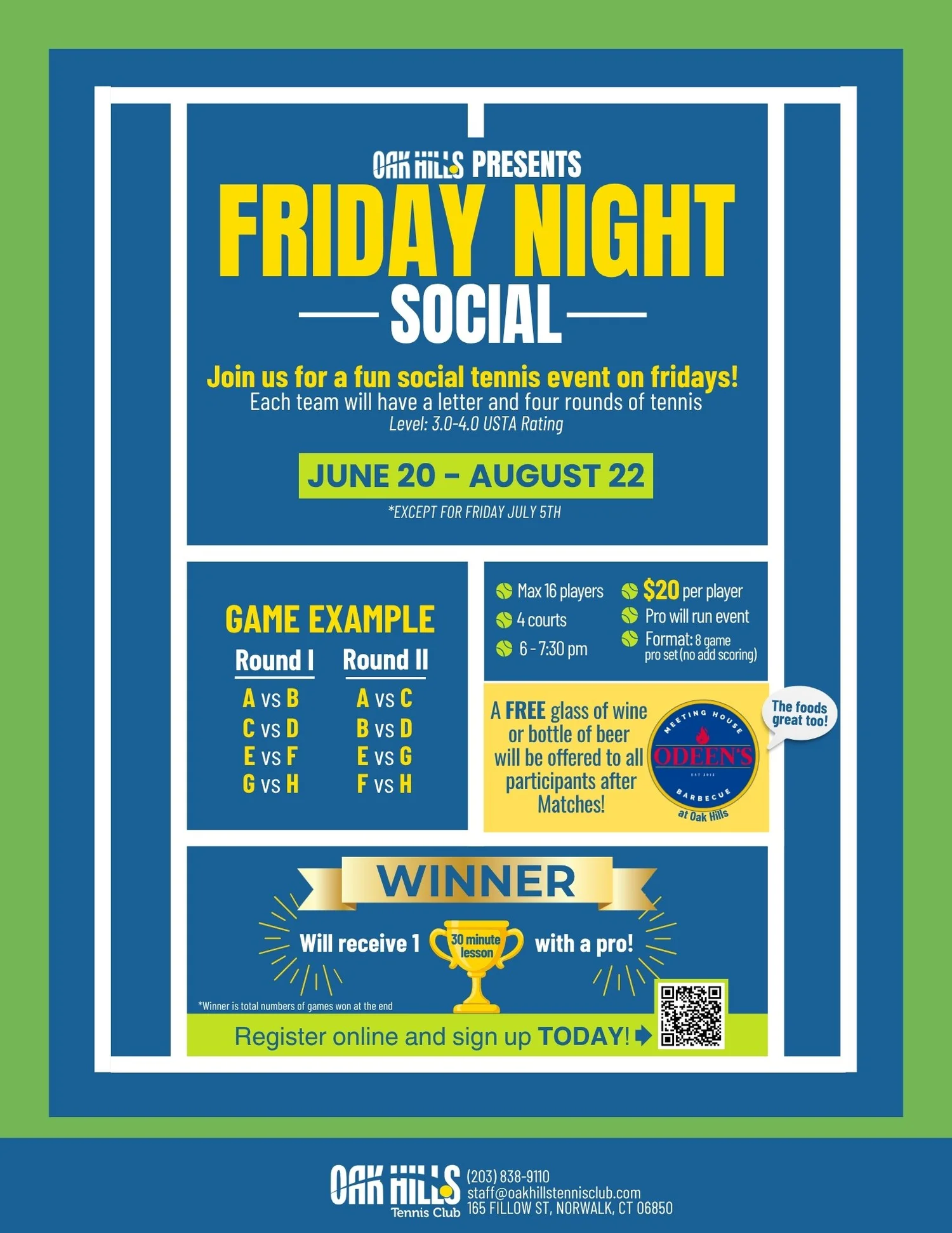 Friday Night Social Norwalk CT Oak Hills Tennis Club