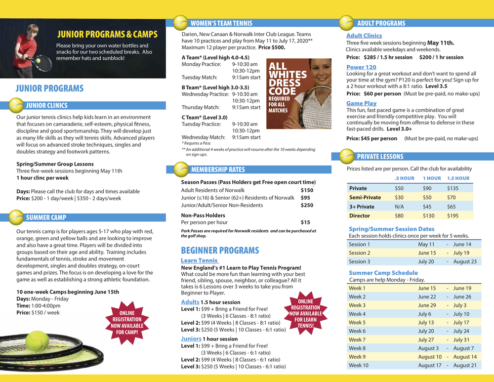 Spring and Summer Brochure Norwalk CT Oak Hills Tennis Club