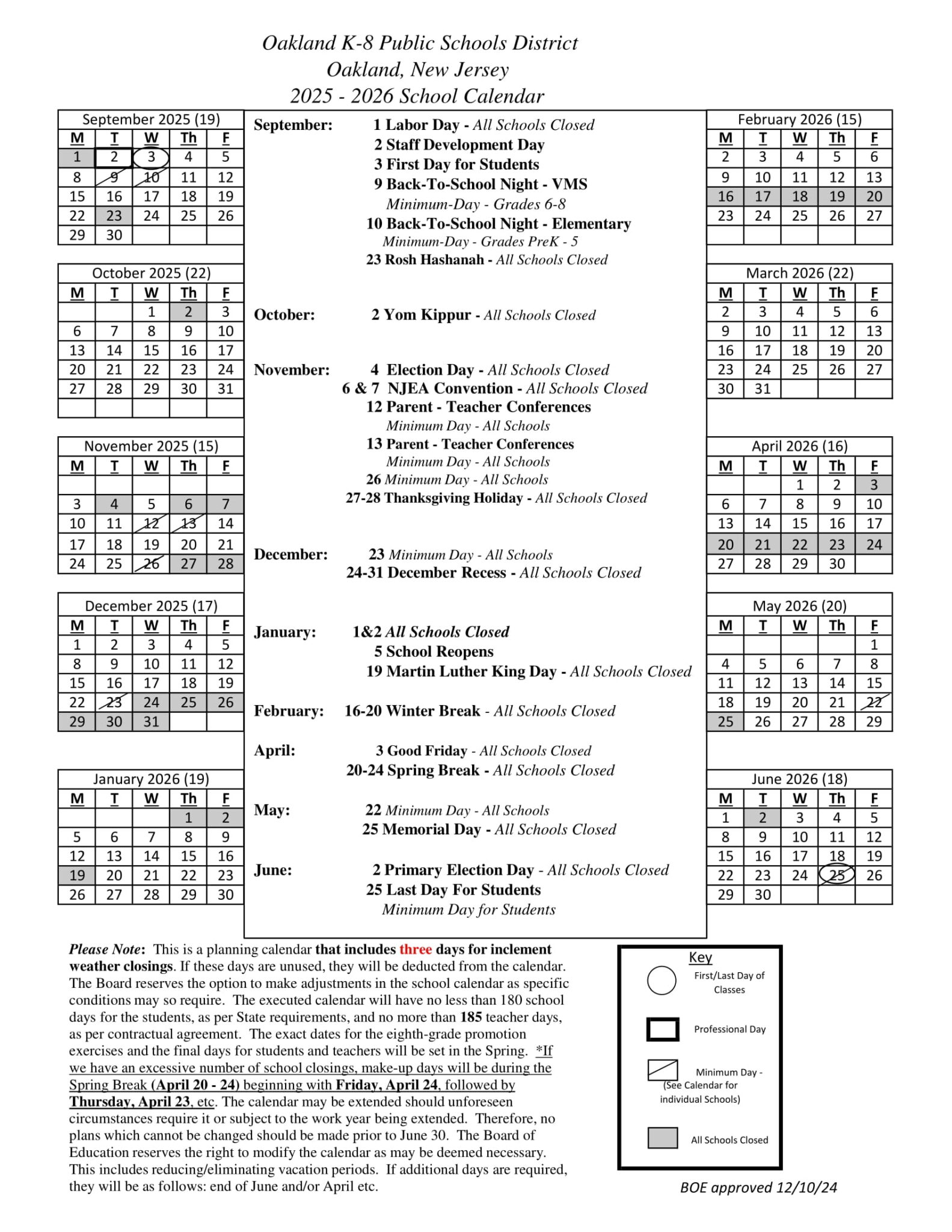 Oakland K 8 Public Schools Calendar 25 26 Revised PDF EduCounty