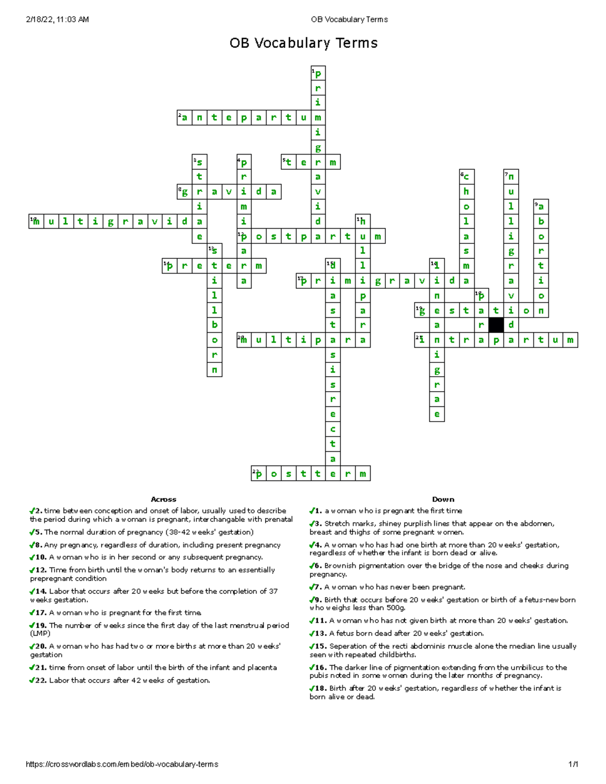 OB Vocabulary Terms crossword key 2/18/22 11:03 AM OB Vocabulary