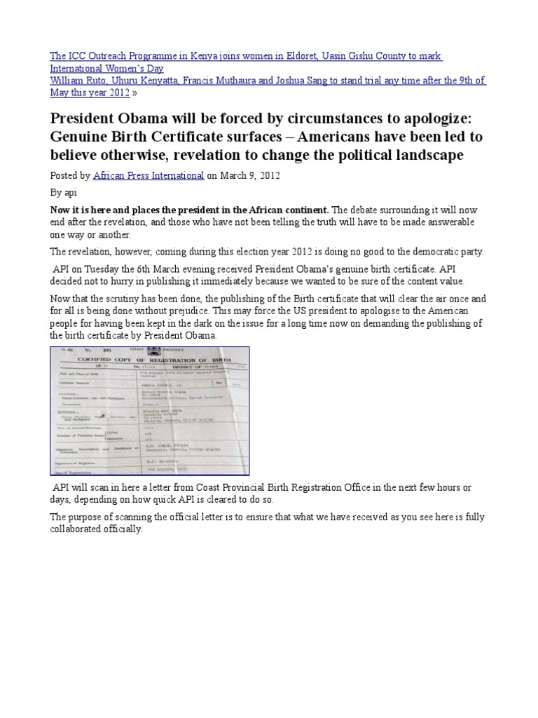 Obamas Kenyan Genuine Birth Certificate Surfaces Government Politics
