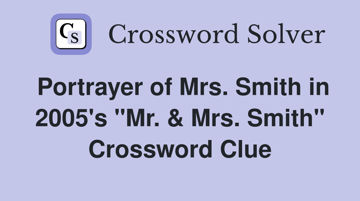 Portrayer of Mrs Smith in 2005 #39 s quot Mr Mrs Smith quot Crossword Clue