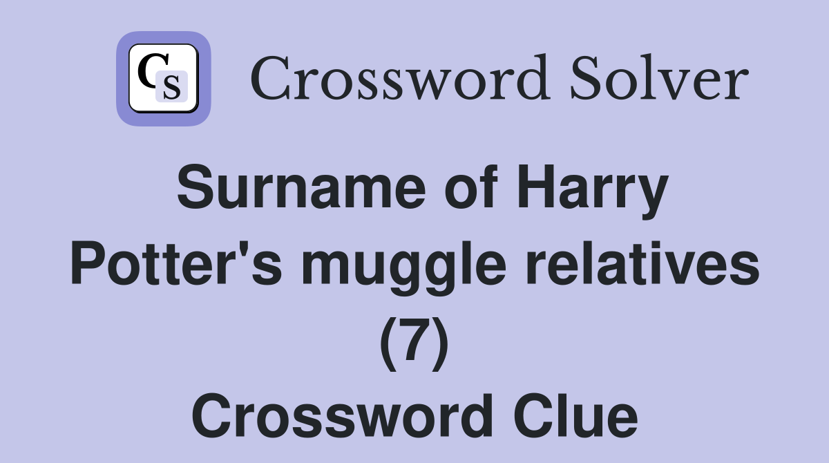 Surname of Harry Potter #39 s muggle relatives (7) Crossword Clue Answers