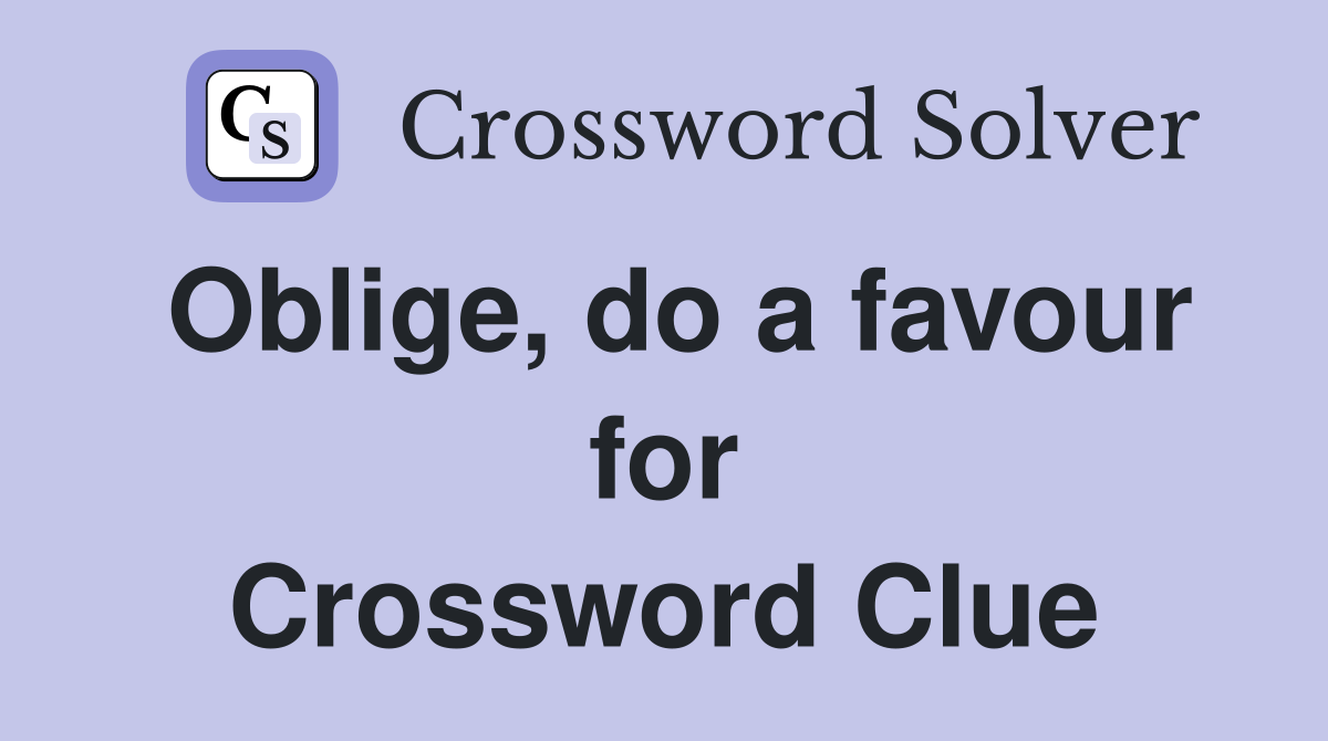 Oblige do a favour for Crossword Clue Answers Crossword Solver