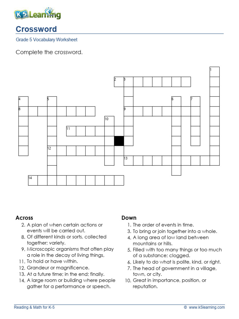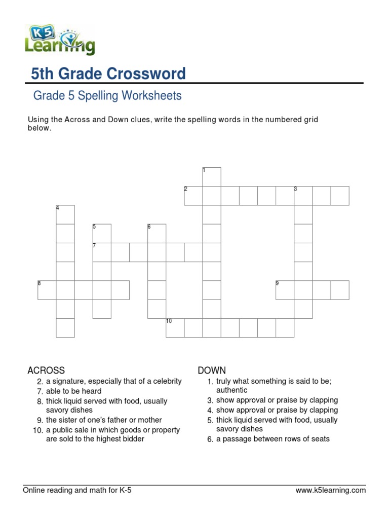 Grade 5 Crossword 1 PDF Crossword Games Of Mental Skill
