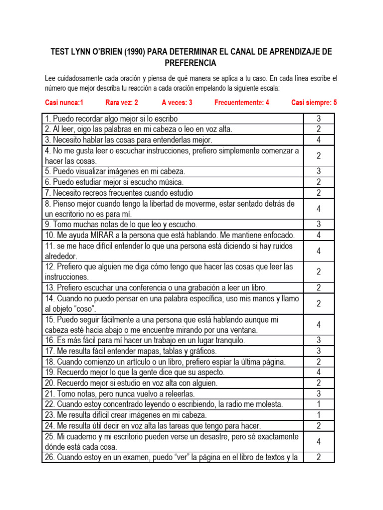 Práctica 3 TEST LYNN OBRIEN DE CANAL DE APRENDIZAJE PDF