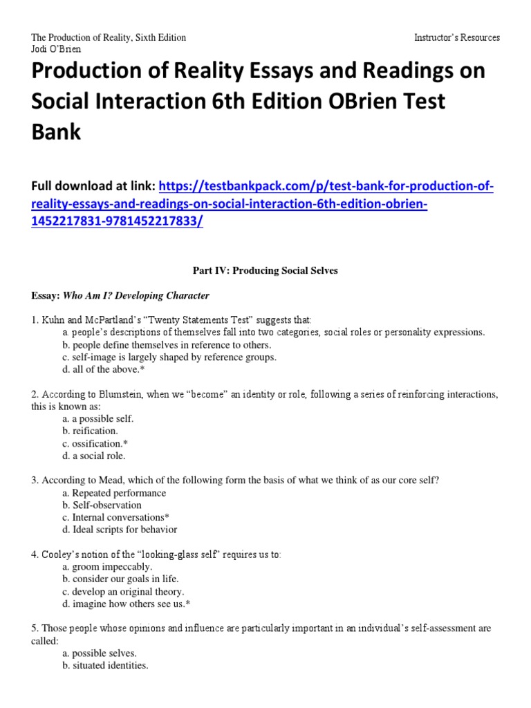 Production of Reality Essays and Readings On Social Interaction 6th