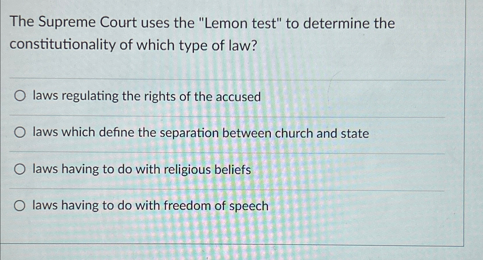 Solved The Supreme Court uses the quot Lemon test quot to determine Chegg com