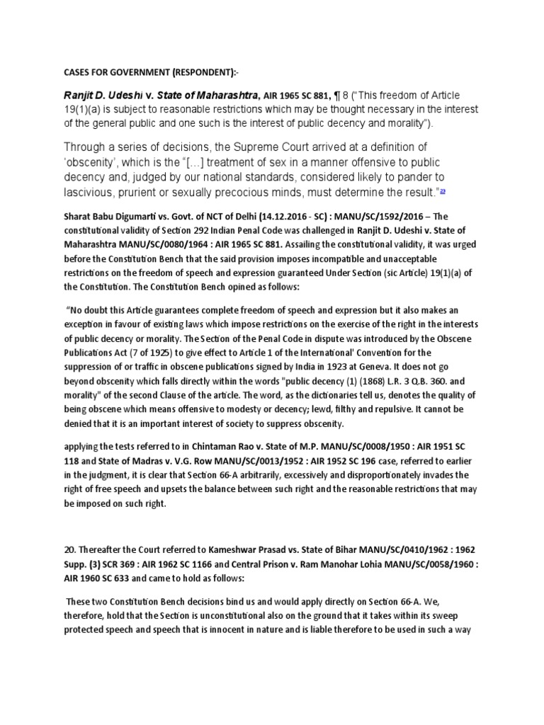 Cases For Government PDF Supreme Court Of India Obscenity
