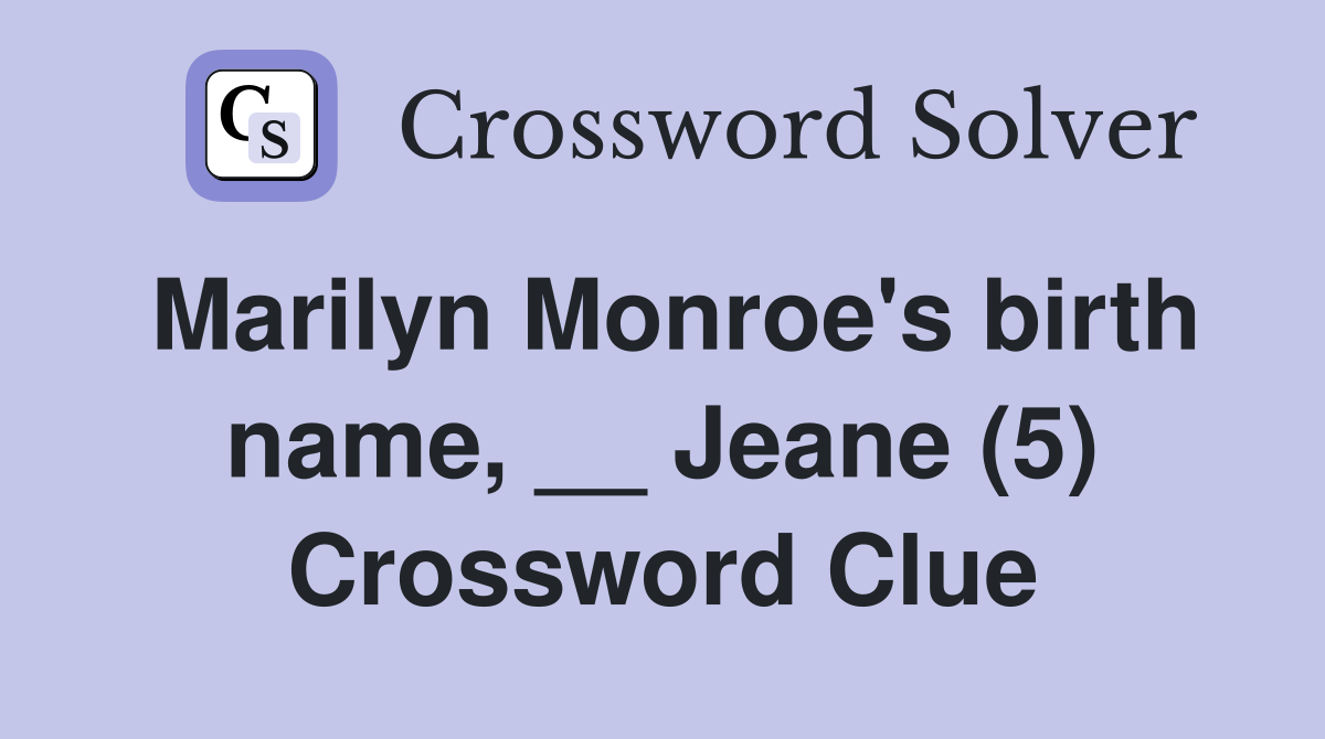 Marilyn Monroe #39 s birth name Jeane (5) Crossword Clue Answers