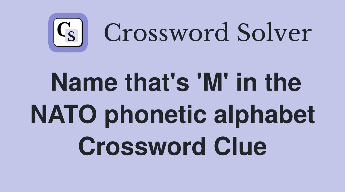 Name that #39 s #39 M #39 in the NATO phonetic alphabet Crossword Clue Answers