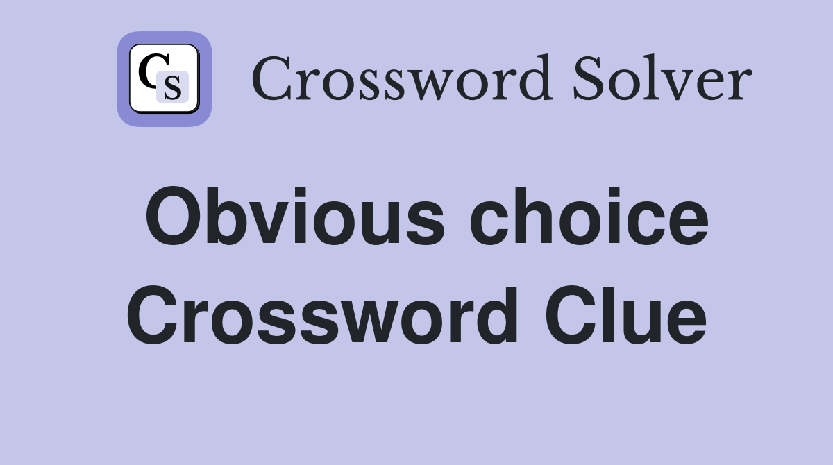 Here are some of the images for Obvious Choice Crossword Clue that we found in our website database.