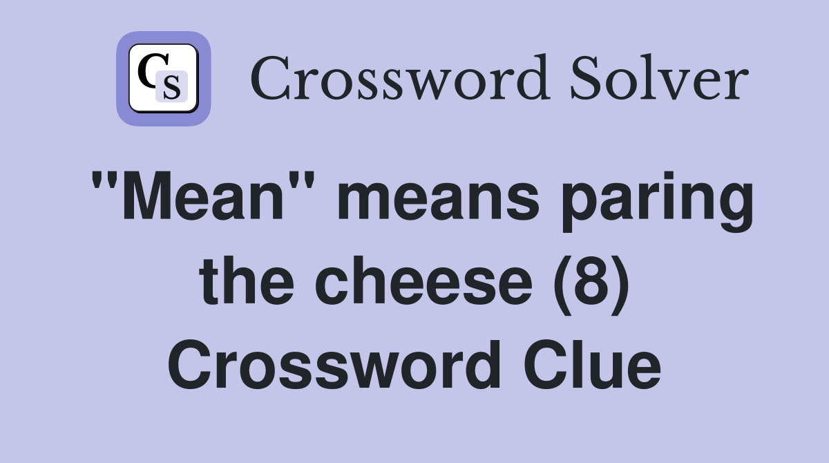 quot Mean quot means paring the cheese (8) Crossword Clue Answers Crossword