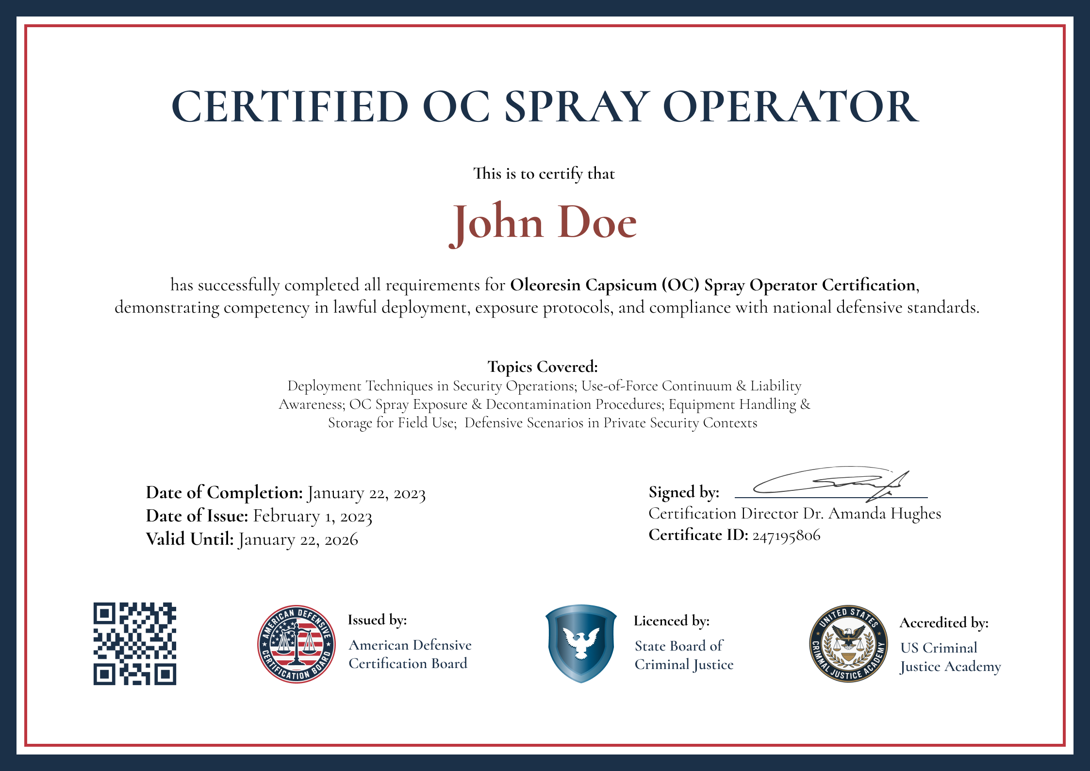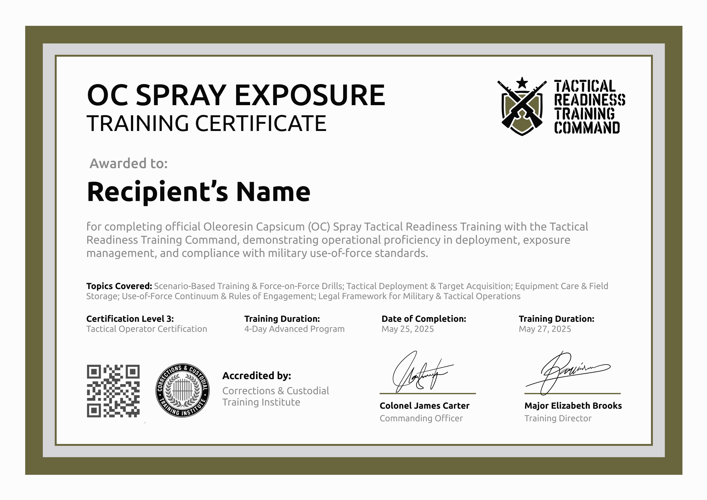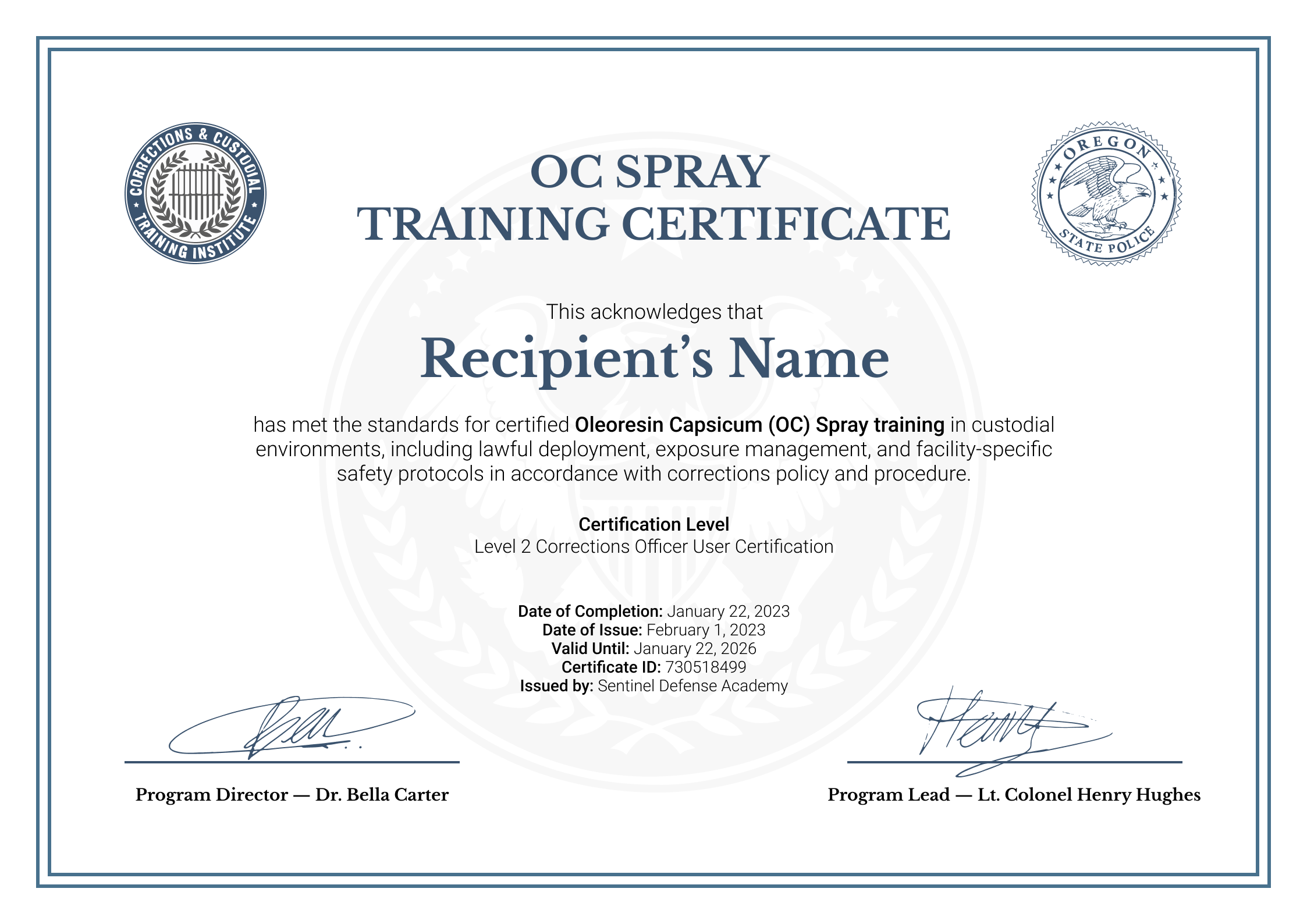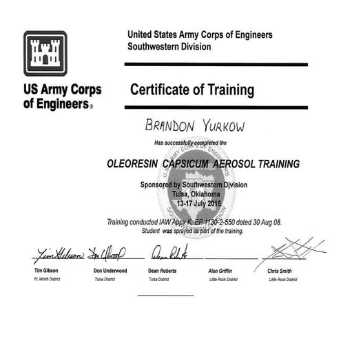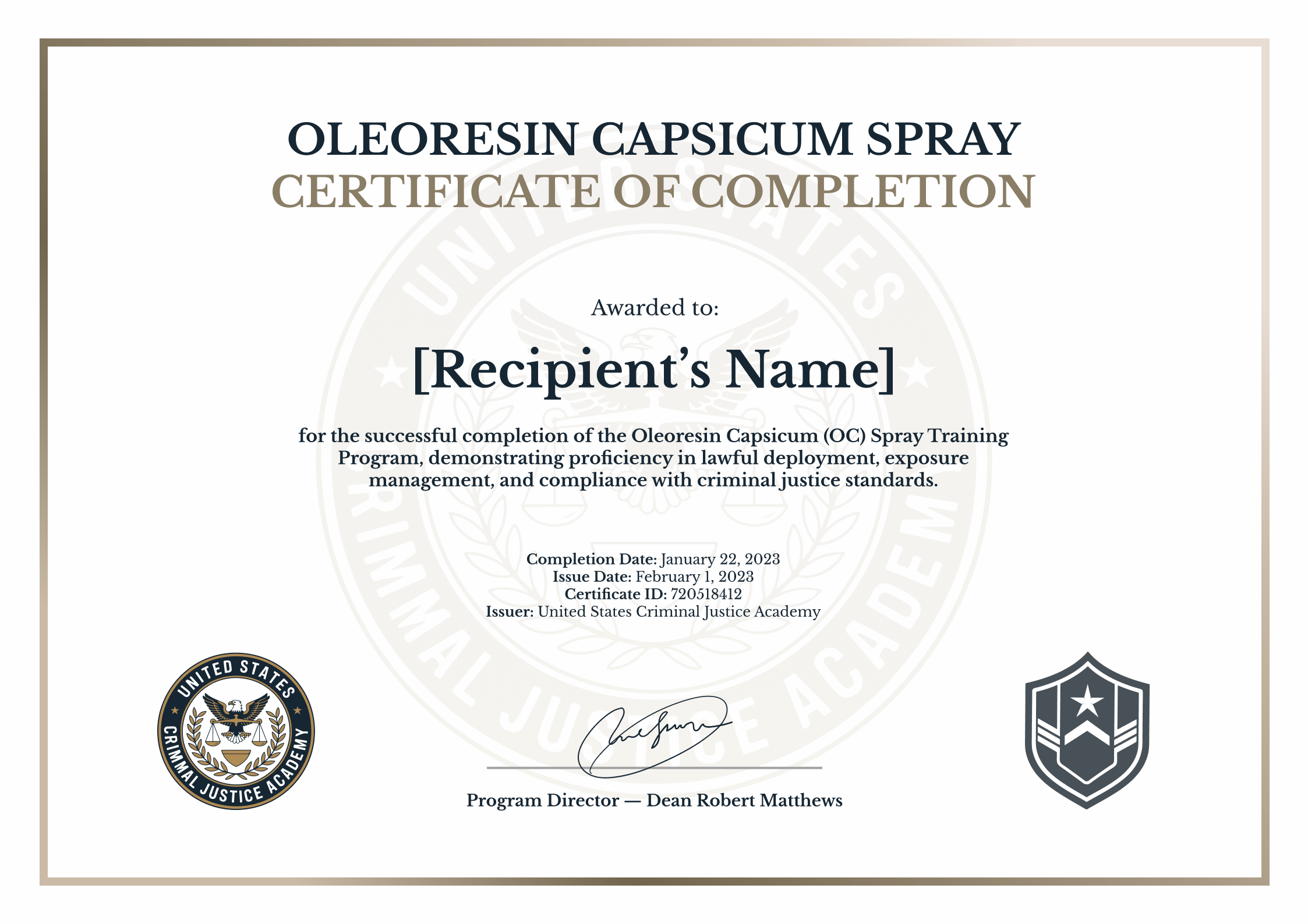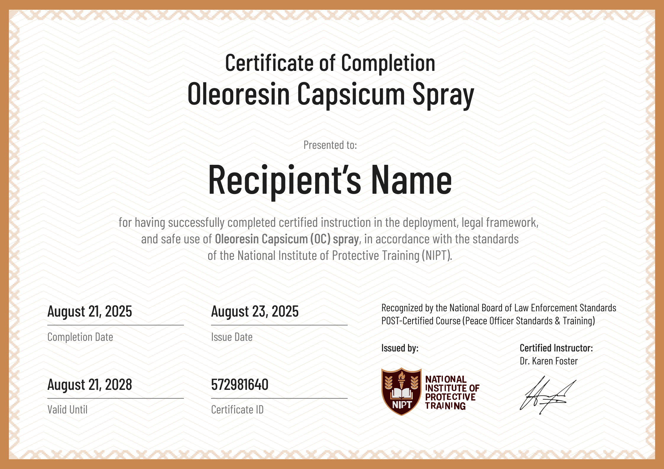 Oleoresin Cpsicum Aerosol Training Certificate PDF Arms