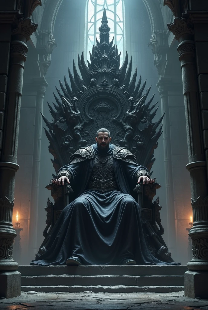 Huge dark and ominous castle inside an iron throne sharp and heavy