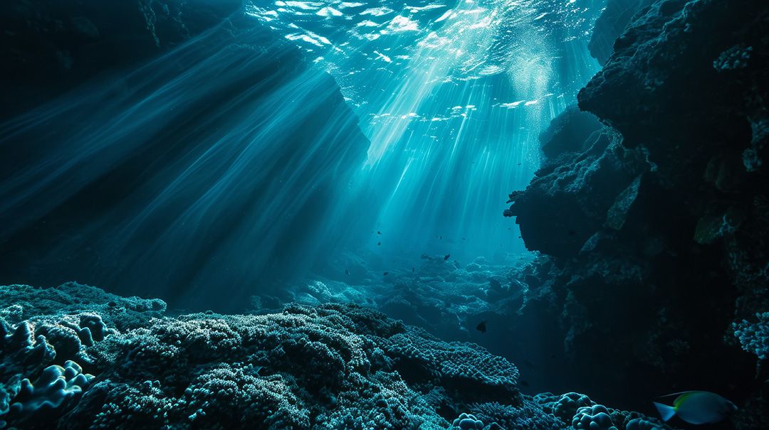 Premium AI Image The ocean floor is a deep blue sea with light rays