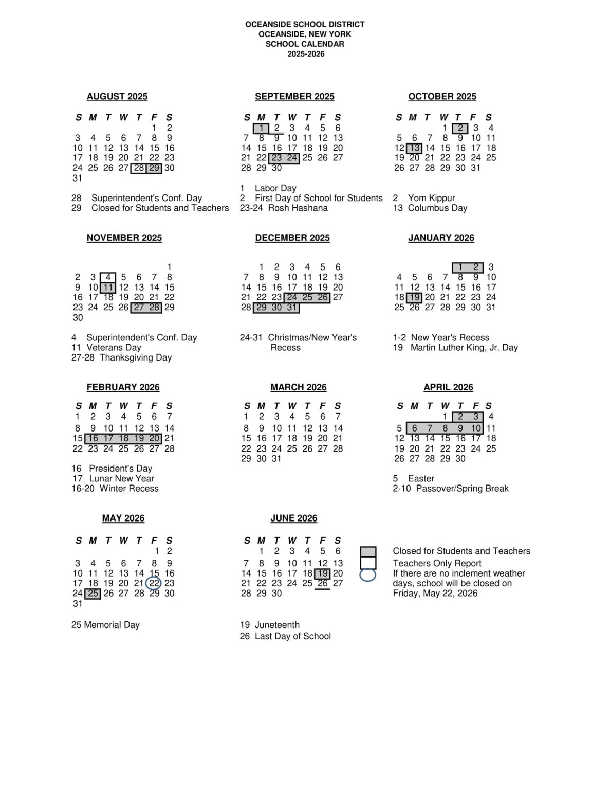 Oceanside School District Calendar 25 26 PDF REVISED EduCounty