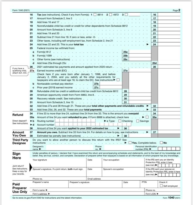 Gillian Welch 2021 Federal Income Tax Return Chegg com
