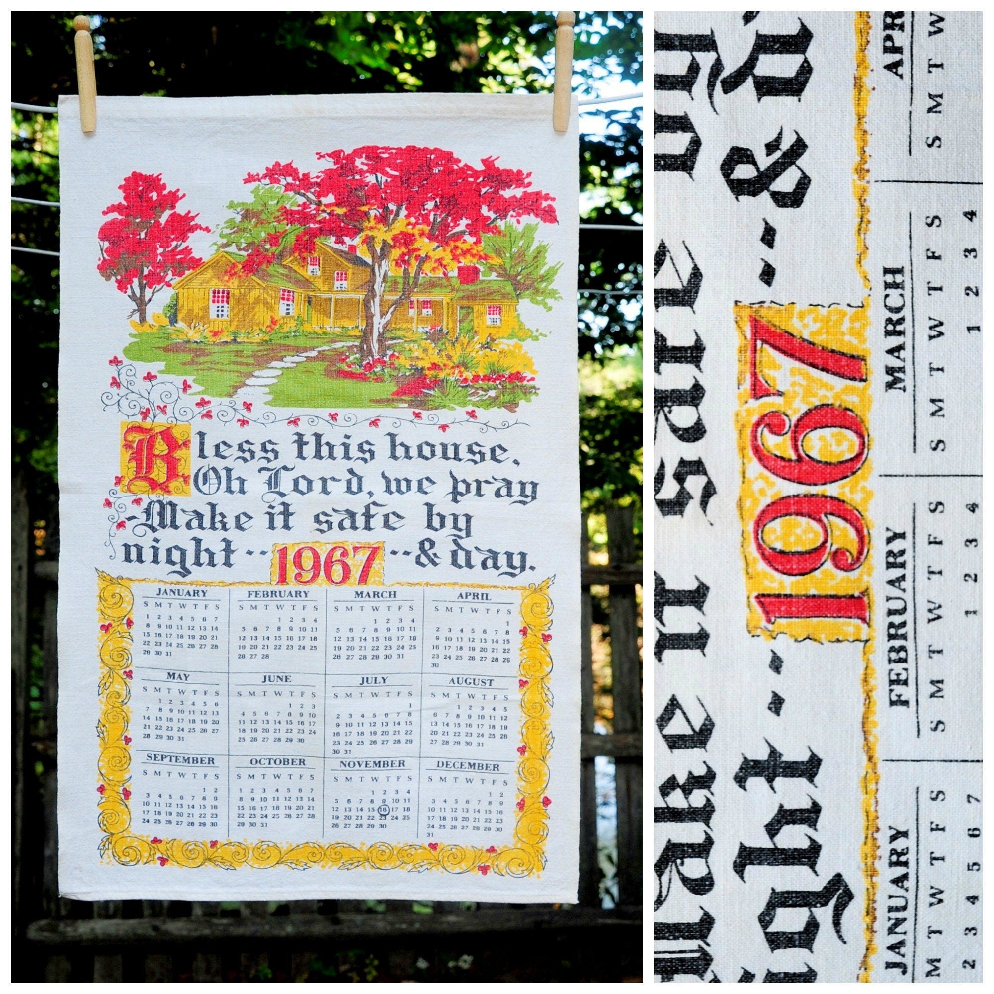 Vintage 1967 Calendar Towel Bless This House Prayer Anniversary Birthd