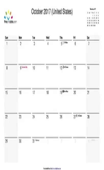 October 2017 Calendar Printable Template PDF Template