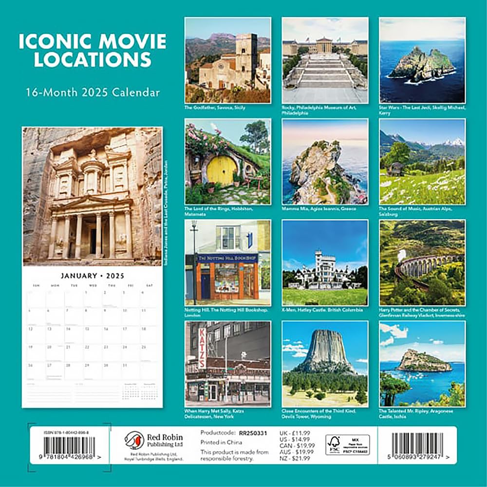 Iconic Movie Locations 2025 Square Wall Calendar by Red Robin