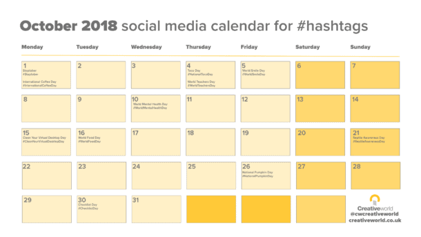 Your October Social Media Calendar 2018 creativeworld