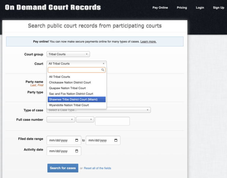 SHAWNEE TRIBAL COURTS UPDATE: PUBLIC CASE INFO AVAILABLE AT ODCR COM