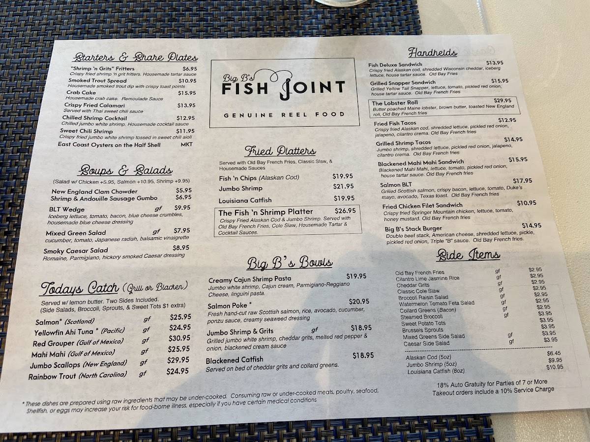Menu at Big B #39 s Fish Joint restaurant Atlanta