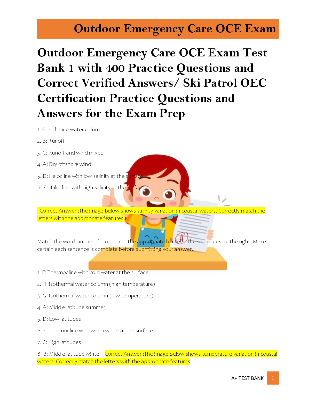 Outdoor Emergency Care OCE Exam Test Bank 1 with 400 Practice Questions