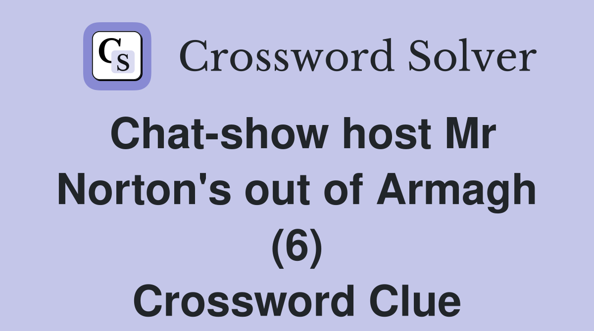Chat show host Mr Norton s out of Armagh (6) Crossword Clue Answers