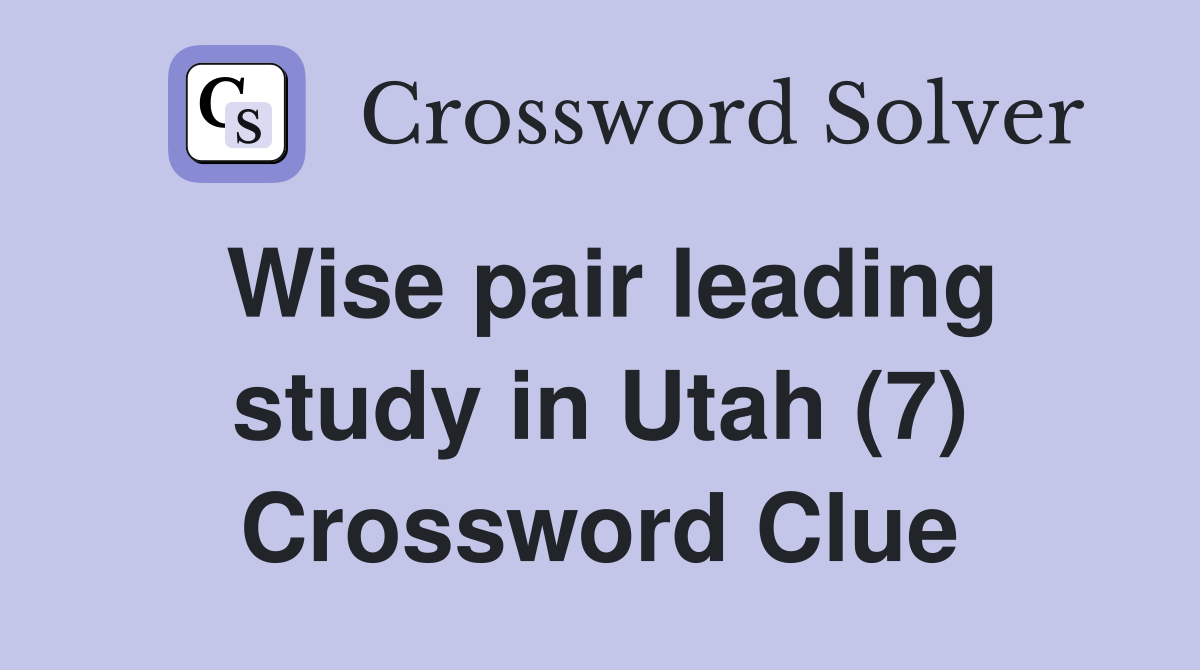 Wise pair leading study in Utah (7) Crossword Clue Answers