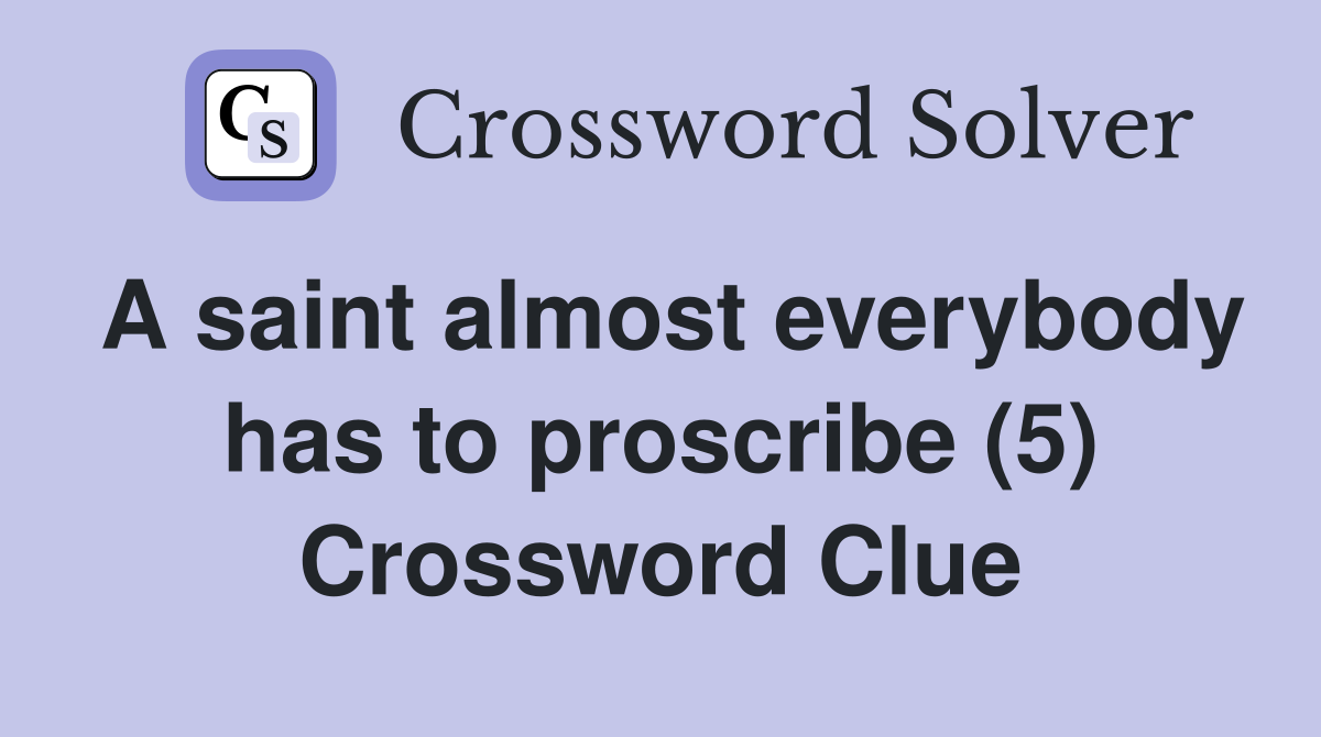 A saint almost everybody has to proscribe (5) Crossword Clue Answers